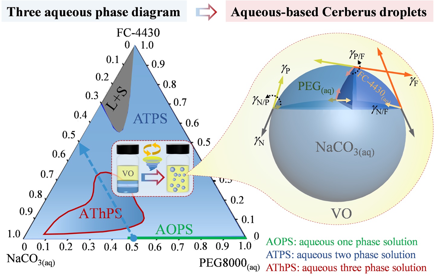 Construction and regulation of aqueous-based Cerberus droplets by vortex mixing