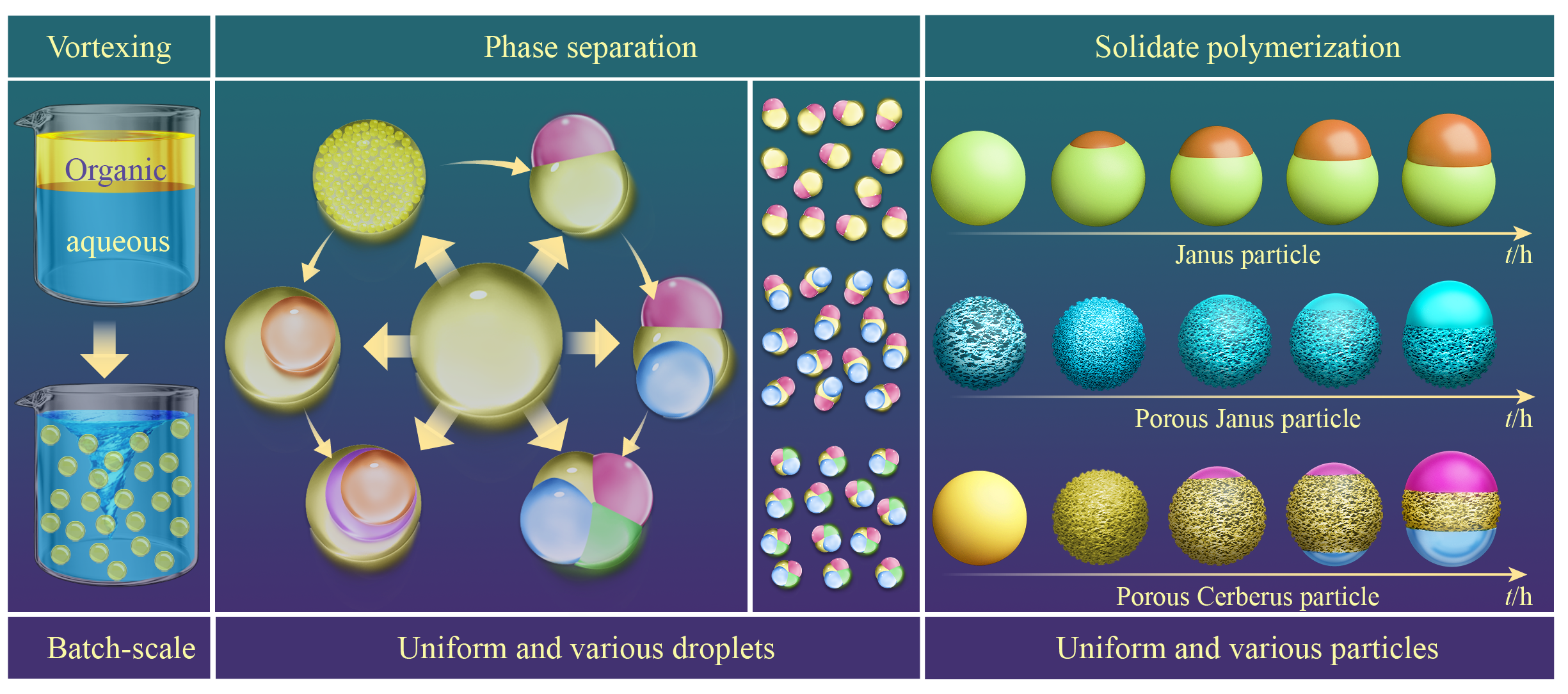 Anisotropic droplets with uniform internal structure prepared in batchscale by combination of vortex mixing and phase separation