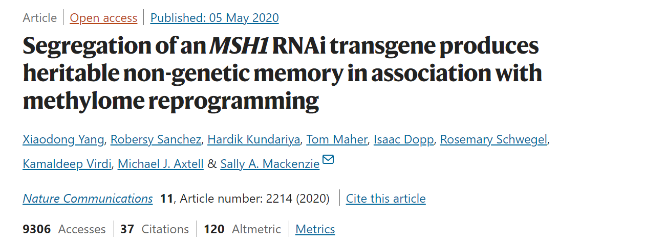 Segregation of an MSH1 RNAi transgene produces heritable non-genetic memory in association with methylome reprogramming